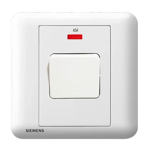 45A 1 Gang Double Pole Switch with Neon Indicator, White, Size 86x86mm, 250V, Siemens (Delta Seata)