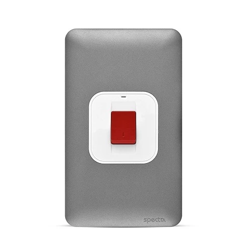 Air Conditioner DP Switch with LED Indicator, Dark Silver Color, 45 Amp, 7×14cm Size, 250V | Spectra