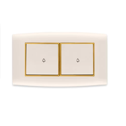 Bell push switch 2 gang 10 Amp Omnia Alfanar Size 14 × 7 cm Color Gold with Gold Ring