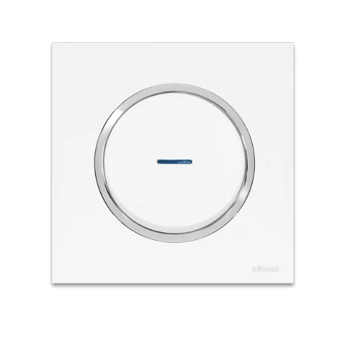Circular electric switch 1 gang 2 way 20 Amp Granada Alfanar Size 7×7 cm Color White with Chrome Ring
