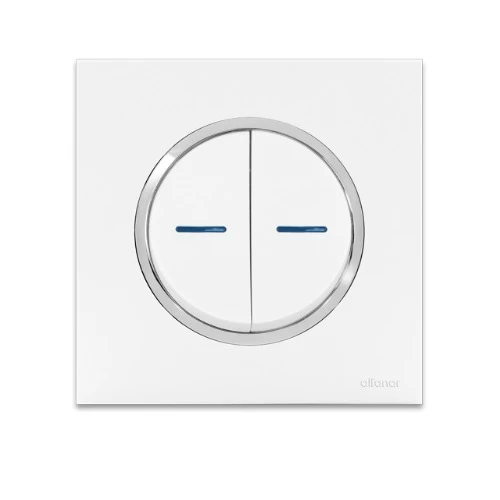 Circular electric switch 2 gang 2 way 10 Amp Granada Alfanar Size 7×7 cm Color White with Chrome Ring