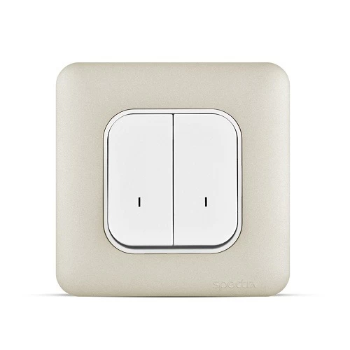 Electrical double pole switch with LED indicator 20 Amp, 2 gang, 250 volt, size 7x7 cm, champagne color, available in various currents and colors to suit diverse needs and applications, manufactured by ACFA Modern (SPECTRA) Company.