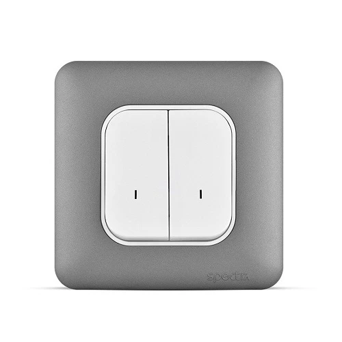 Electrical double pole switch with LED indicator 20 Amp, 2 gang, 250 volt, size 7x7 cm, dark silver color, available in various designs and multiple colors to suit all tastes, manufactured by ACFA Modern (SPECTRA) Company according to Saudi and British standards.