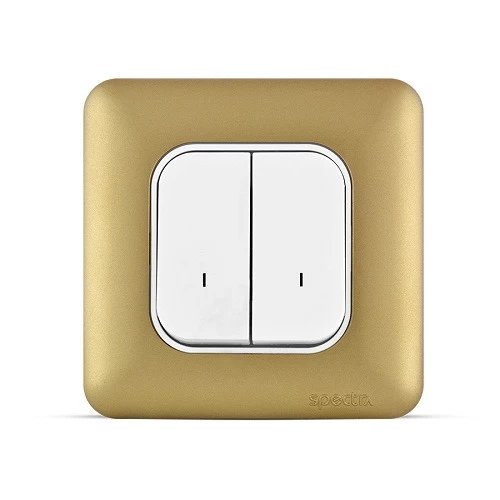 Double Pole Switch 20Amp 2 Gang, with LED Indicator, Gold Color, 7x7cm | Spectra