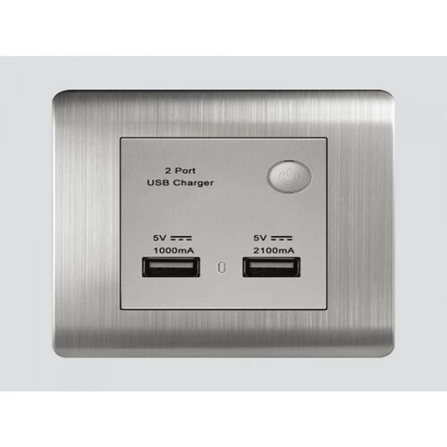 Double USB Socket, Size 7×7 cm, Steel Color