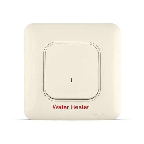 Double pole switch with LED indicator marked "WATER HEATER", manufactured by ACFA Modern (SPECTRA) Company according to Saudi and British standards. It features the ability to completely cut off the power supply to the water heater, ensuring maximum safety. Constructed from innovative, high-quality materials resistant to fire, breakage, corrosion, oils, and chemicals. The internal components are made of pure copper plated with silver to ensure maximum efficiency and electrical conductivity, with high resistance to corrosion and heat during operation. Available in various designs and colors to suit diverse needs and applications.