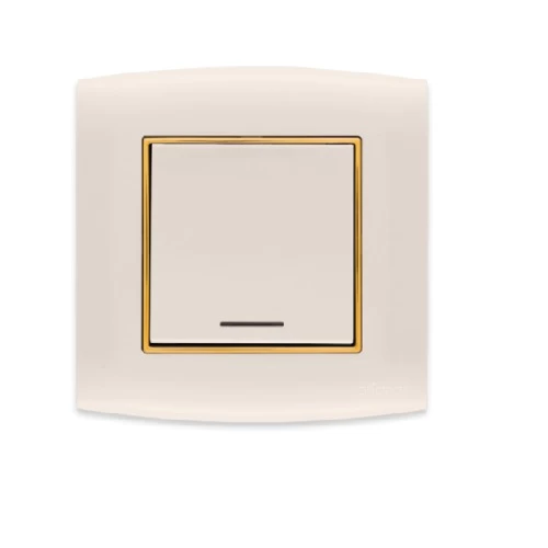 Electrical light switch 1 gang 2 way with LED 20 Amp Omnia Alfanar Size 7×7 cm Color Gold with Gold Ring