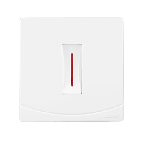 Electric Light Switch, 1 gang 2 way with LED , 20 Amp, Sidra, Brand EL FANAR, Size 7x7 cm, white color, have a stylish, modern look and they are equipped with a metallic frame for durability. They are Quality Mark-stamped and come with a product replacement warranty.