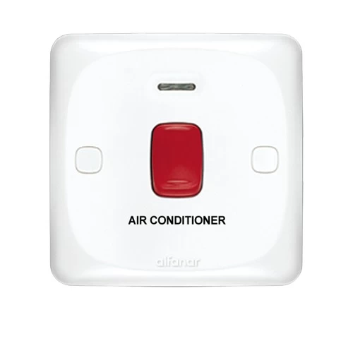Electrical light switch 1 gang double pole with led 45 Amp Mira Alfanar Size 7×7 cm Color White