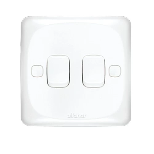 Electrical light switch 2 gang 2 way 20 Amp Mira Alfanar Size 7×7 cm Color White