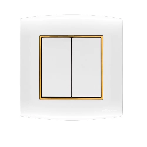 Electrical light switch 2 gang 2 way 20 Amp Omnia Alfanar Size 7×7 cm Color White with Gold Ring