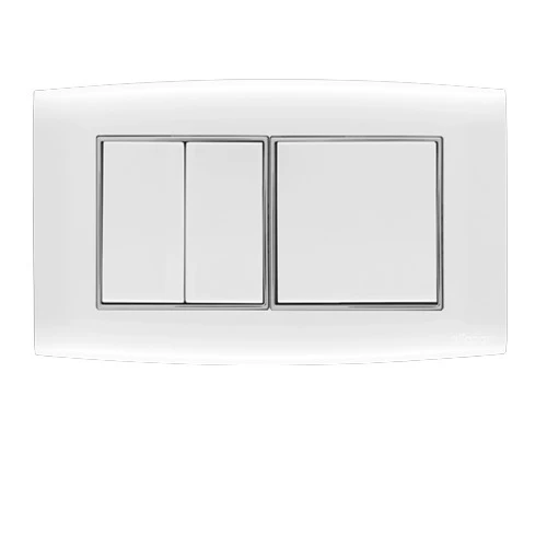 Wide Electrical Light Switch, 3 gang, 10 Amp, Omnia, Brand EL FANAR, Size 14x7 cm, White color with chrome ring, have a stylish, modern look and they are equipped with a metallic frame for durability. They are Quality Mark-stamped and come with a product replacement warranty.