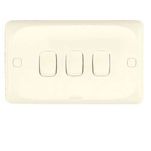 Electrical light switch 3 gang 2 way 10 Amp Mira Alfanar Size 14 × 7 cm Color Beige