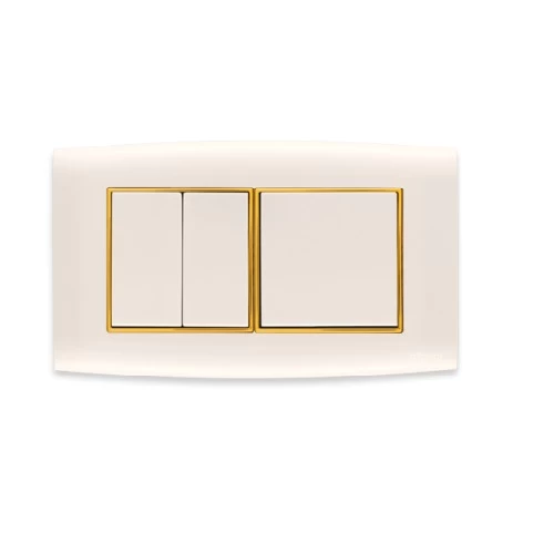 Electrical light switch 3 gang 2 way 10 AMP omnia Size 7×14 cm Color Gold with Gold Ring Brand AL-FANAR , they are equipped with a metallic frame for durability. They are Quality Mark-stamped and come with a product replacement warranty.