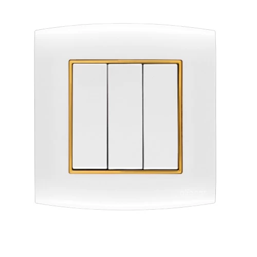 Electrical light switch 3 gang 2 way 20 Amp Omnia Alfanar Size 7×7 cm Color White with Gold Ring