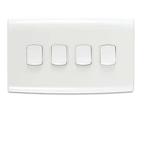 Electrical light switch 4 gang 10 AMP ALF Size 7×14 cm Color White Brand AL-FANAR , they are equipped with a metallic frame for durability. They are Quality Mark-stamped and come with a product replacement warranty.