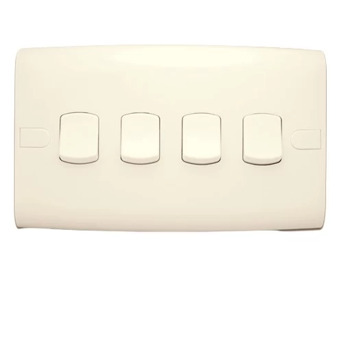 Electric Light Switch, 4 gang 2 way, ALF Classic,Brand Al Fanar,have a stylish, modern look and they are equipped with a metallic frame for durability. They are Quality Mark-stamped and come with a product replacement warranty