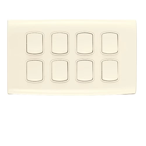 Electrical light switch 8 gang Brand AL-FANAR, It has a stylish, modern look and they are equipped with a metallic frame for durability. They are Quality Mark-stamped and come with a product replacement warranty.