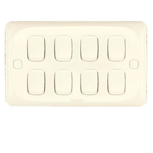 Electrical light switch 8 gang 2 way 10 Amp Mira Alfanar Size 14 × 7 cm Color Pearl