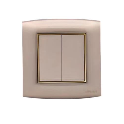 Hurry up to buy now. Electrical light switch inermediate 2 gang 2 way 20 AMP omnia Size 7×7 cm Color Gold with Gold Ring Brand AL-FANAR , they are equipped with a metallic frame for durability. They are Quality Mark-stamped and come with a product replacement warranty.