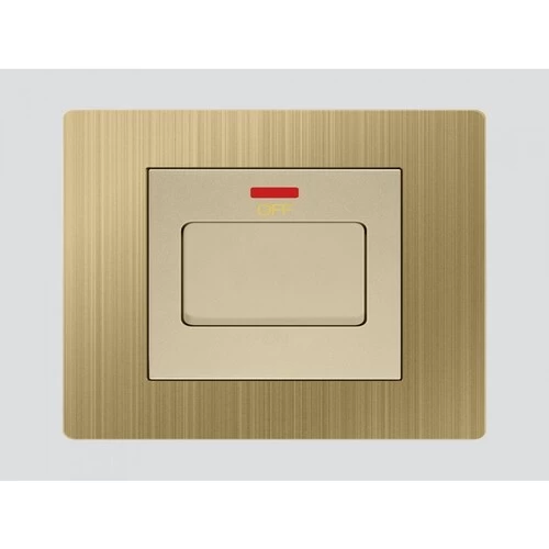 The golden single water heater switch is carefully designed for safe and easy control of electric water heaters. Made of durable, high-quality materials, it features a modern golden finish that adds a luxurious touch to interior spaces. Perfect for homes and offices. Available in various colors to suit all preferences.