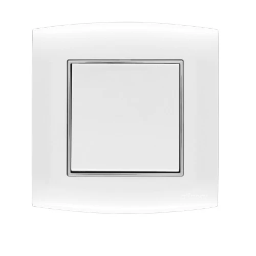 Wide Electrical Light Switch, Intermediate 1 gang, 20 Amp, Omnia, Brand EL FANAR, Size 7x7 cm, White color with chrome ring, have a stylish, modern look and they are equipped with a metallic frame for durability. They are Quality Mark-stamped and come with a product replacement warranty.