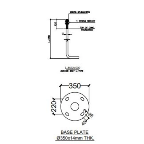 - Anchor bolt length: 500 mm