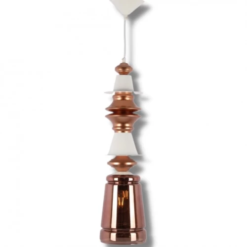 Ceiling glass pendant bronze - white, dimensions 60x15 cm, 80 cm wire, model 250240, it provides comfortable and ideal lighting for living rooms, and is available in various designs and colors to suit all categories.