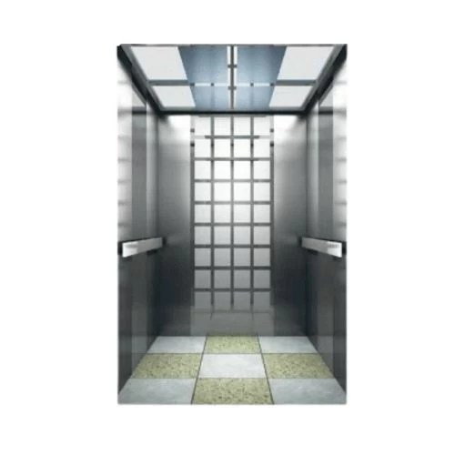 This machine roomless passenger elevator features a stylish metallic interior with hairline stainless steel panels and etched mirrors for a sleek, reflective look. The ceiling includes a stainless steel frame and a soft acrylic light-emitting panel, providing balanced and modern lighting. A flat stainless steel handrail enhances user comfort and accessibility. The PVC floor ensures durability, safety, and resistance to daily wear. With no need for a machine room, the elevator’s compact system saves valuable building space, reduces energy consumption by over 33%, and offers flexible installation for contemporary architectural needs, all while ensuring full safety and performance.