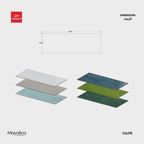 Calpe moisture-resistant porcelain for floors and walls, size 15×5 cm, glossy Surface, light green color, 8 mm thickness, exceptional ability to withstand climate changes, making it suitable for outdoor use where it’s exposed to sun and rain.