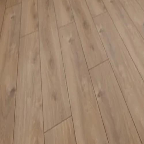 HDF modern wood parquet with a thickness of 8 mm, brown color features a contemporary design and high quality. It offers an elegant appearance and excellent durability, making it an ideal choice for flooring in homes and offices. It adds a touch of warmth and elegance to any space.
