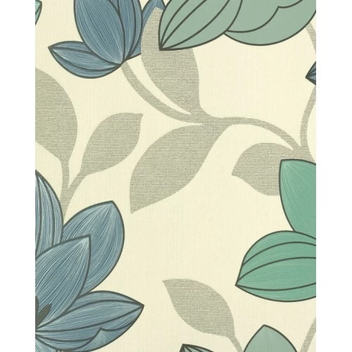 British wallpaper floral design size 10m x 0.53m beige and blue, It features advanced protection technologies as it contains layers that are resistant to corrosion and moisture, making it last for long periods.