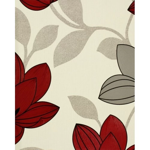 Floral wall covering beige and red color, length 10 m, width 0.53 m, It enhances personal creativity and allows for a quick change of atmosphere as it can be easily swapped out to update the look of a room without the need for a complete renovation.