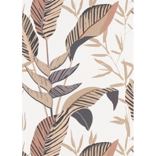 German wall covering leaf-patterned design beige color, size 10×0.53 m, model 10332-02, can be used to cover imperfections in the walls, such as cracks or stains, giving a sleek appearance, it can be easily installed and changed when you want to refresh the decor providing flexibility in design
