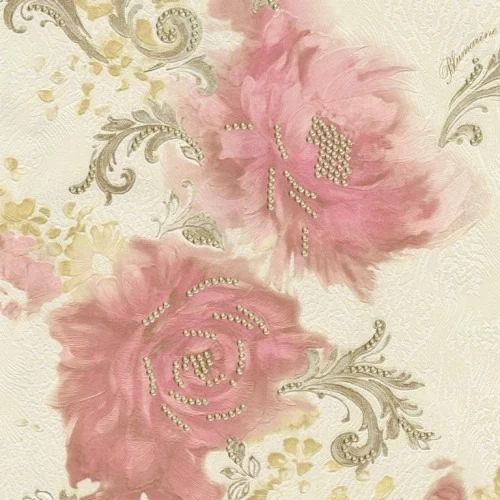 Italian wallpaper, beige with pink,...