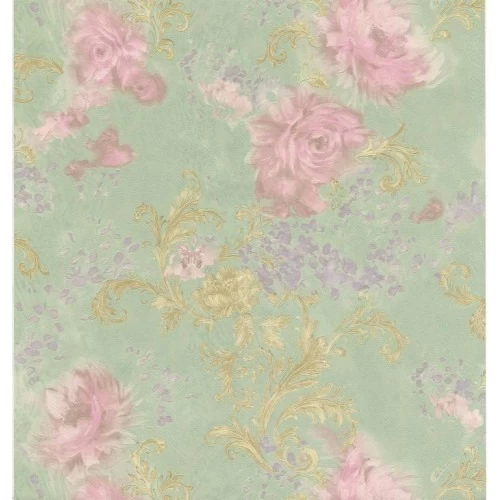 Italian wallpaper, green with pink,...