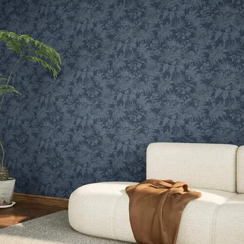 Leaf-patterned wallpaper, length 10 m, width 50 cm, blue color, provides you with an opportunity to renew the decor of the place quickly and at a lower cost compared to renewing paint, easy to clean and maintain.