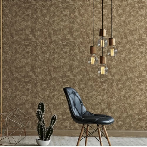 Plain vinyl wallpaper, length 15.6 meters, width 106 cm, gold color, model 63004-5, it is easy to clean and maintain, which makes it a practical choice for various rooms in the house, it does not cause annoying odors during installation.