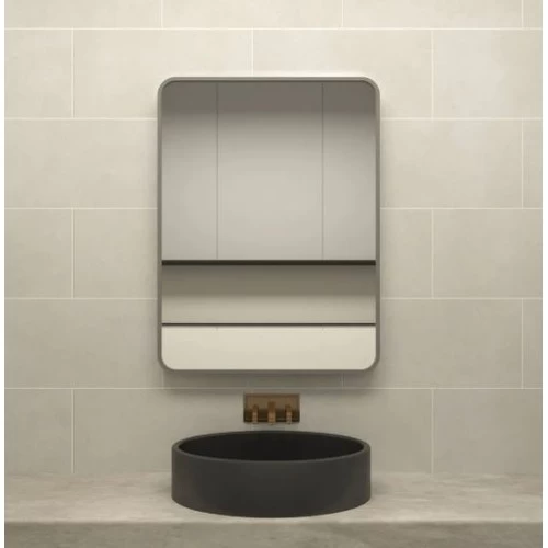 Chinese bathroom mirror, rectangular shape with aluminum frame, size 50 x 70 cm, thickness 4 mm, gray color, made of high-quality materials, it has an elegant and modern appearance, and is also easy to clean and moisture resistant.