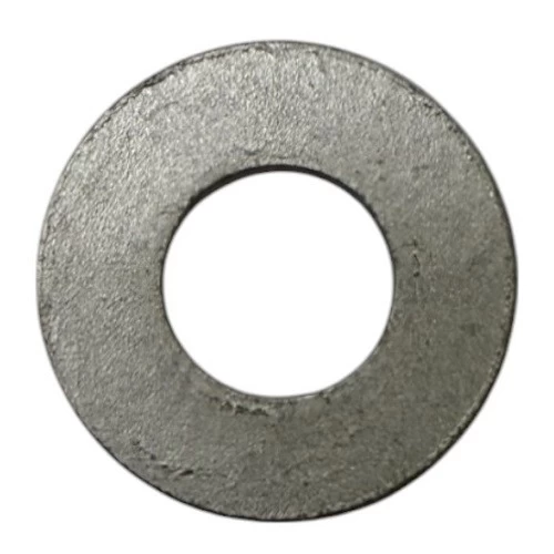 Flat steel washer 14mm inner diameter, 33mm outer diameter, and thickness of 3.2 mm, made of hot-dip galvanized steel to ensure corrosion resistance. It is primarily used to distribute the fastening load from bolts or nuts over a larger area. This prevents damage to the material being fastened and reduces the likelihood of loosening over time.