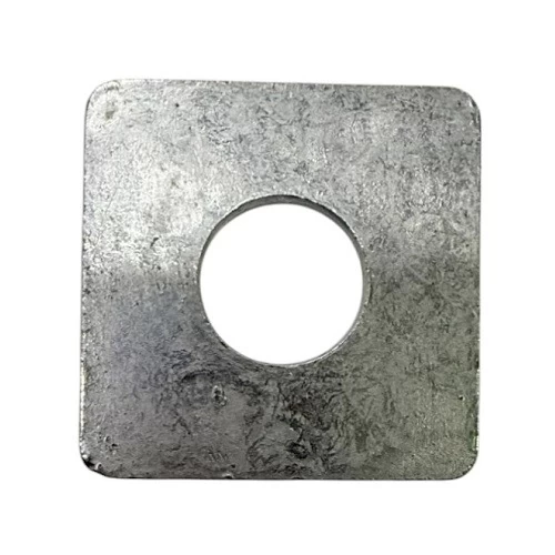 Square washer plate, made of hot-dip galvanized steel to ensure corrosion resistance. It is primarily used to distribute the fastening load from bolts or nuts over a larger area. This prevents damage to the material being fastened and reduces the likelihood of loosening over time.
