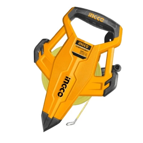 Double-sided tape measure, 50 meters long, 12.5 mm wide, Ingco brand, high-quality steel, characterized by ease of use and durability. It is resistant to shocks and extends its life during different measuring times.