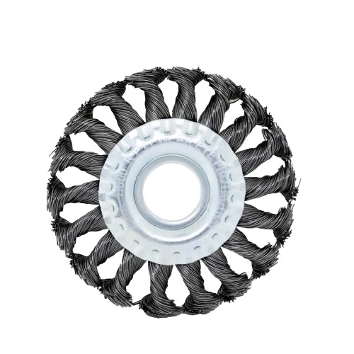 The braided disc brush, high quality, strong and effective in cleaning, provides excellent performance even in heavy and complex tasks. It is a good choice for cleaning weld seams and removing paint, rust and corrosion of all kinds with high efficiency. It can be used with angle grinder and is also effective in blending edges and treating rough surfaces. , making it ideal for various manufacturing tasks such as metal and stone processing, surface cleaning and preparation.