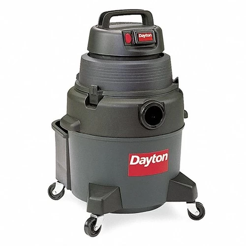 Vacuum cleaner, size 25 x 17 x 15 1/2 inches, 120 volts, Dayton brand, used for dust extraction and shuts off automatically when the tool is turned off. It has a port on its operating panel to connect electrical tools.