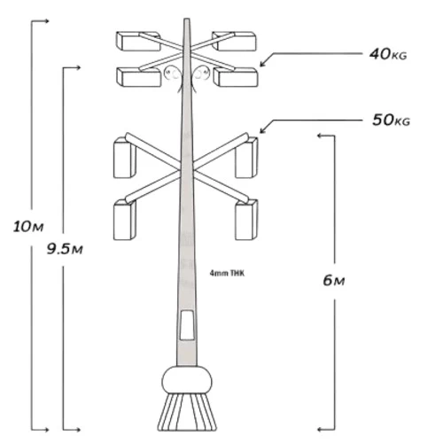 Lighting pole, made of High quality aluminum, characterized by strength, durability, resistance to rust and external weather factors, and high endurance, which extends its life. It is used to illuminate roads and public places, as street lighting poles help provide security and safety and reduce accidents while driving at night. It is available in a variety of shapes and sizes with the highest quality to suit all different needs.