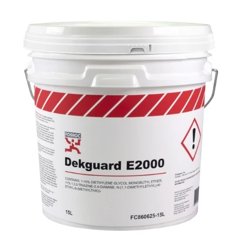 Decorative Acrylic Coating Dekguard E2000 Fosam for Concrete, Size 15 litres, White Color Liquid, Crack-resistant rubber coating, It reduces dirt retention and allows water vapor to escape from the building and is resistant to ultraviolet rays, It is used to protect concrete structures from exposure to acid gases and chloride ions such as oxygen and water.