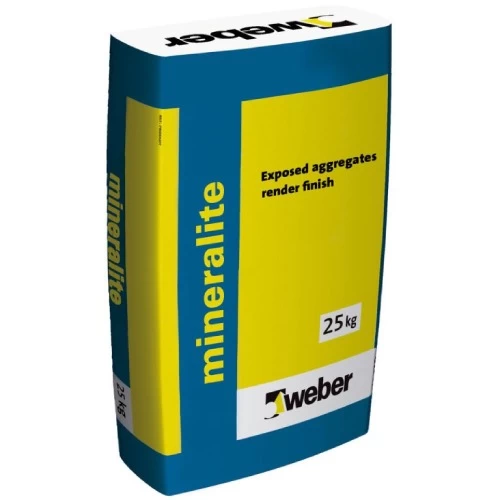 Decorative Mineralite Cement Paint, Brand SODAMCO-Weber, Barrel Size 25 kg, Suitable for use on walls, a cement-based finish that is finished to expose a variety of durable aggregates including granite and glass. Ensure that the plaster surface is well leveled before applying it. Expansion joints must be included to match the existing joints in the substrate. Carry it through all layers of render It is supplied as a dry material mix requiring only the addition of clean water to provide an extremely durable surface when finished.