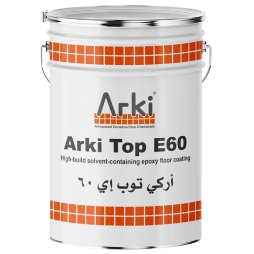 Arki top E60 manufactured by Arki Company, is a two-pack solvent-free epoxy resin-based floor coating of medium viscosity, high compressive strength, excellent abrasion resistance, can be made non-slip for wet areas, used in chemical and pharmaceutical plants, power plants, turbine areas, offices and corridors.
