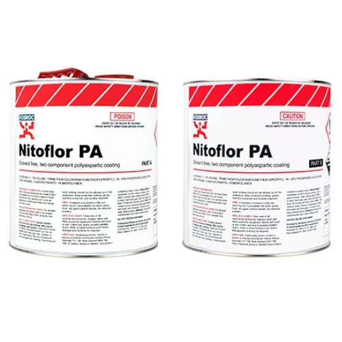 Floor Coating Polyaspartic Nitoflor PA, Fosam Company, Solvent-free multi, for use on properly prepared concrete surfaces, UV and abrasion resistant and used as a top coat for resinous floors such as hospitals, schools, kitchens and high traffic applications, easy to use.