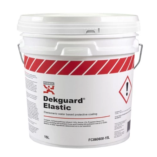 Anti Carbonation Protective Coating Dekguard Elastic Fosam, Size 15 litres, White Color Liquid, It is characterized by its resistance to ultraviolet rays and its high resistance to weather factors in the long term. It is used to protect concrete structures from exposure to acidic gases and chloride ions such as oxygen and water, especially when there is a risk of cracks and prevents the passage of water and waterborne pollutants.